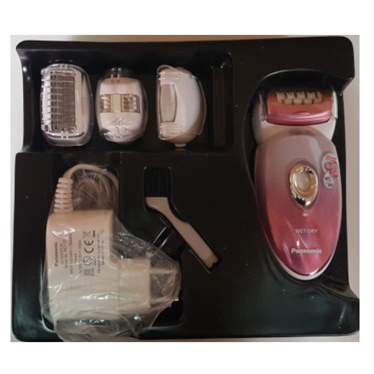 Panasonic Wet & Dry Epilator model ES-ED90-P mit Original Verpackung und Zubehör Lieferumfang: - 1 Epilator - Epilationskopf für Arme und Beine - Epilationskopf für Achsel und Bikinizone - Rasierer - Reinigungspinsel - Ladekabel