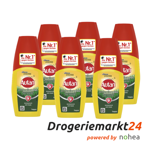 Autan Mückenspray Protection Plus Zeckenschutz 6 Stück Autan® Protection Plus Zeckenschutz PumpsprayZuverlässiger Schutz vor Zecken und Mücken - mit einer milden, milchigen Formulierung und Aloe Vera. Bis zu 4 Stunden Schutz vor Zecken Bis zu 7 Stunden Schutz vor Mücken Frei von KonservierungsstoffenGebrauchsanweisung:Produkt gleichmäßig auf alle zu schützenden Hautstellen sprühen und anschließend mit der Hand lückenlos verreiben. Wir empfehlen z.B. für die Fläche eines Unterarms ca. 6-7 Sprühstöße/~1ml zu verwenden. Zur Anwendung im Gesicht direkt in die Handfläche sprühen und sparsam im Gesicht verteilen, Augen- und Mundpartie dabei aussparen. Nicht auf Kinderhände sprühen. Sollte die Wirkung nachlassen, erneut wie beschrieben anwenden. Darf nicht in die Hände von Kindern gelangen. BEI KONTAKT MIT DEN AUGEN: Einige Minuten lang behutsam mit Wasser spülen. Vorhandene Kontaktlinsen nach Möglichkeit entfernen. Weiter spülen. Sprühnebel nicht einatmen.Anwendung nur nach Gebrauchsanweisung. Produkt bei Kindern unter 2 Jahren nicht anwenden. Nicht auf geschädigten Hautstellen (z.B. Sonnenbrand) anwenden. Nur zur äußeren Anwendung. Verpackung nicht wiederverwenden, sondern restentleert der Wertstoffsammlung zuführen.Inhaltsstoffe:Icaridin 20% Hinweis zur Batterie-EntsorgungBatterien beinhalten wertvolle Rohstoffe, die zwar umweltschädlich sind, aber wiederverwertet werden können. Altbatterien dürfen deshalb nicht in den einfachen Hausmüll gelangen, sondern müssen gesondert entsorgt werden. Für Händler besteht die gesetzliche Verpflichtung, alte Batterien zurück zu nehmen, Verbraucher sind verpflichtet, Altbatterien zu einer geeigneten Sammelstelle zu bringen. Entsorgungspflichtige Batterien sind an der durchgestrichenen Mülltonne zu erkennen, die auf der Verpackung aufgedruckt ist. Jeweils unter dem Mülltonnen-S